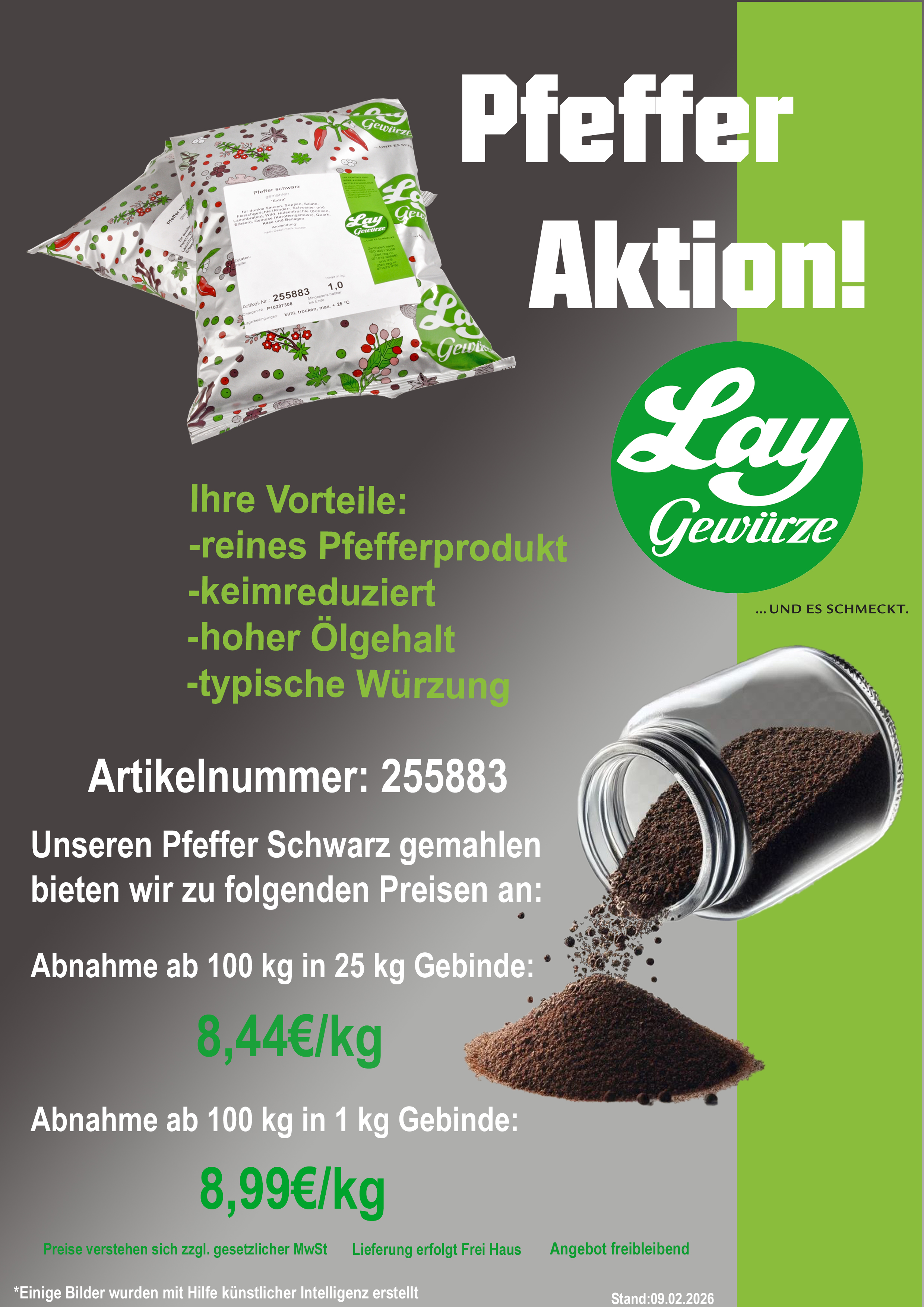 Mit unserer Pfeffer Aktion erleben Sie die volle Kraft der Aromen! Verleihen Sie Ihren Produkten eine unvergleichliche Würze und entdecken Sie Pfeffer in seiner besten Form – für echte Genussmomente!!